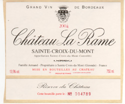 Depuis plus d’un siècle, la famille Armand travaille la vigne de Sainte Croix du Mont. C’est une passion si dévorante qu’elle devient le centre de leur vie, l’essentiel étant la qualité du vin. De ce fait, la transmission du savoir faire acquis au cours des ans se fait tout naturellement entre les générations. En 1956, Claude Armand a saisi l’opportunité d’acquérir le Château La Rame. Comme tous les viticulteurs de la région, il avait en mémoire la réputation d’excellence passée de cette propriété. Il consacra en priorité tous ses moyens à la remise en état du vignoble, puis en 1969, il entreprit avec l’aide de son fils Yves, actuel propriétaire, de rénover les chais afin de redonner à La Rame la qualité et la renommée qui étaient les siennes au début du siècle.